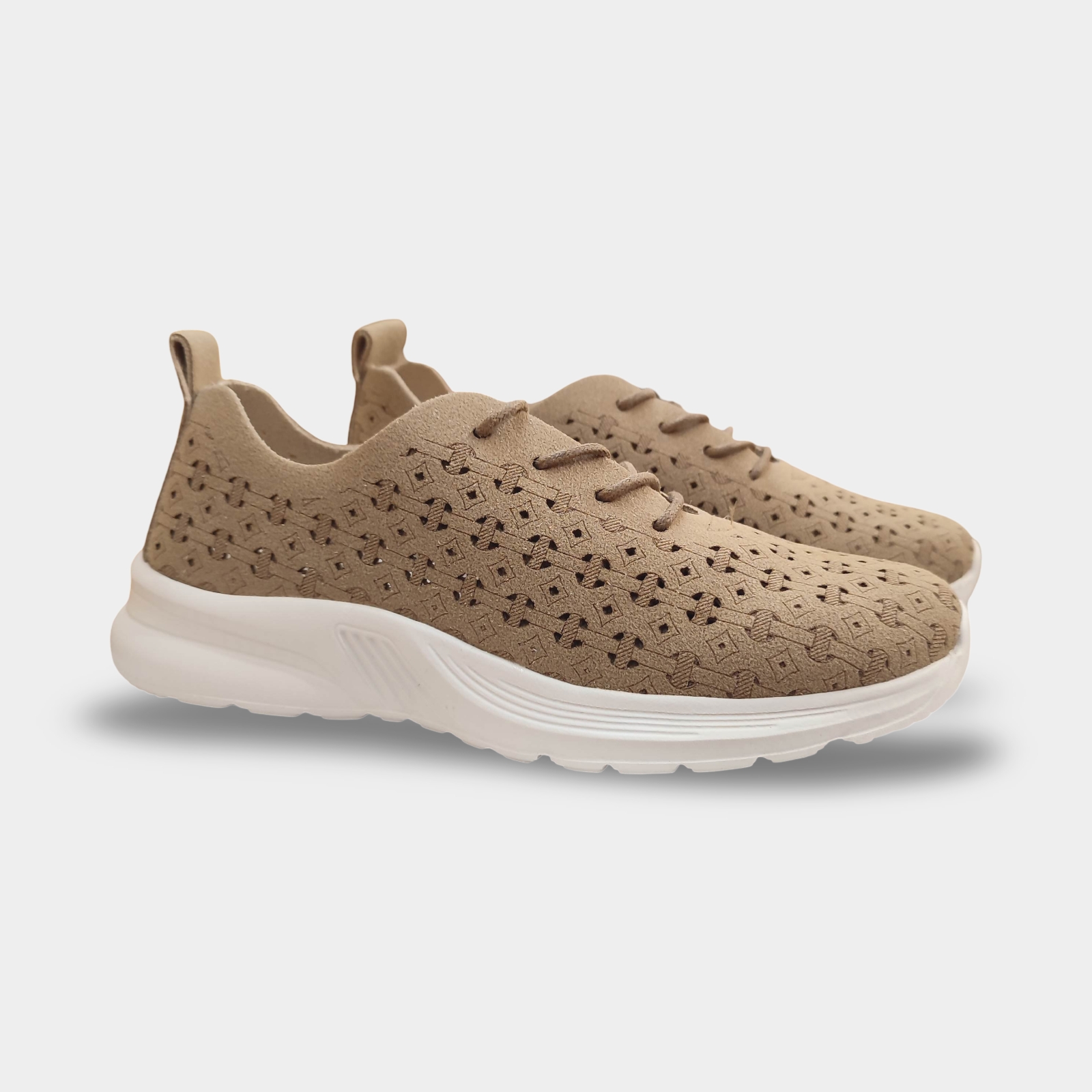 La sabata sport de dona calada en color taupe és una opció perfecta per als que busquen comoditat, lleugeresa i frescor en un mateix model. El seu disseny funcional i senzill el converteix en un bàsic ideal per a ús diari, especialment en èpoques de calor.