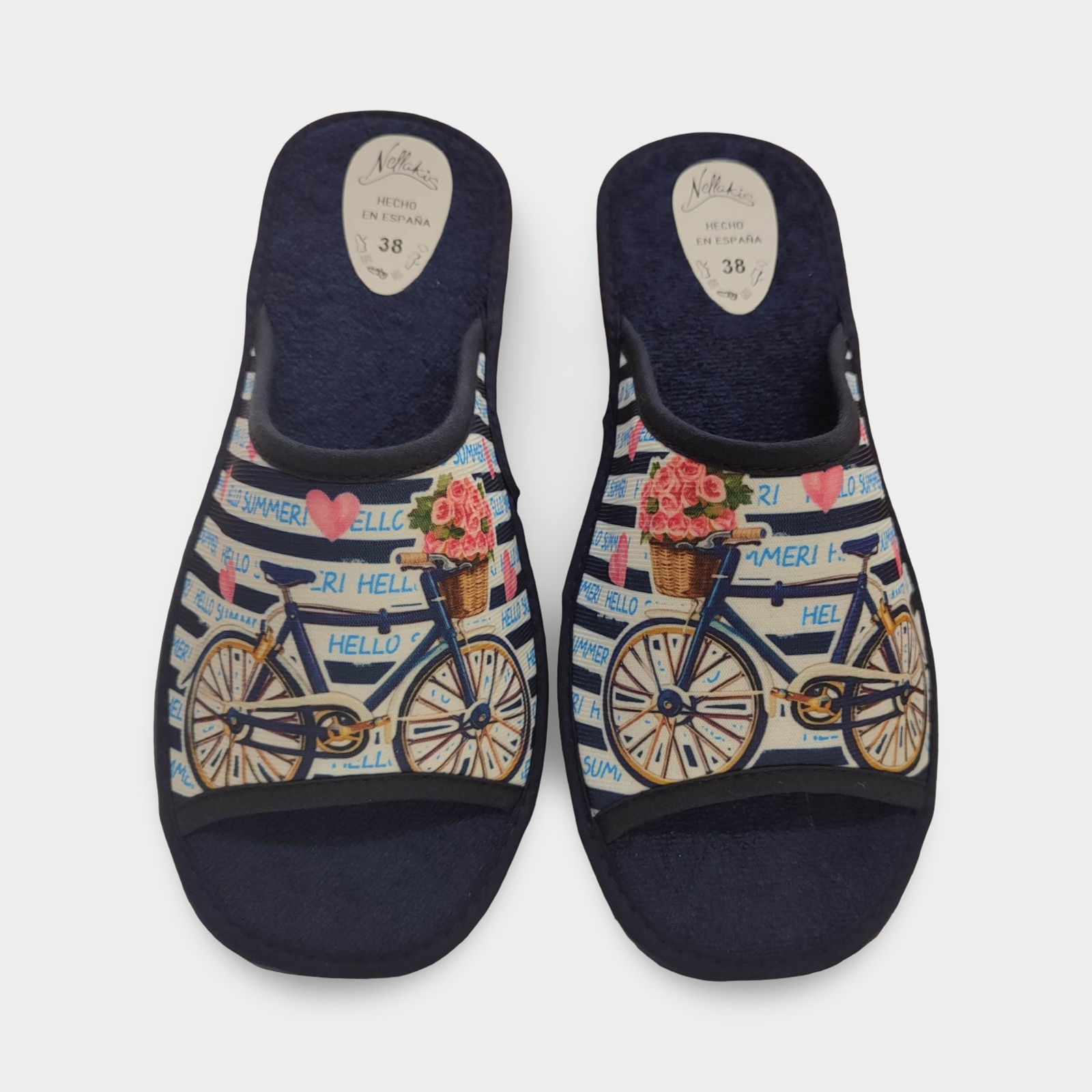 Cansada de passar calor a casa? Aquestes sabatilles de casa per a dona en color blau amb disseny de bici estan pensades per a l'estiu: lleugeres, fresques i súper còmodes des del primer pas .