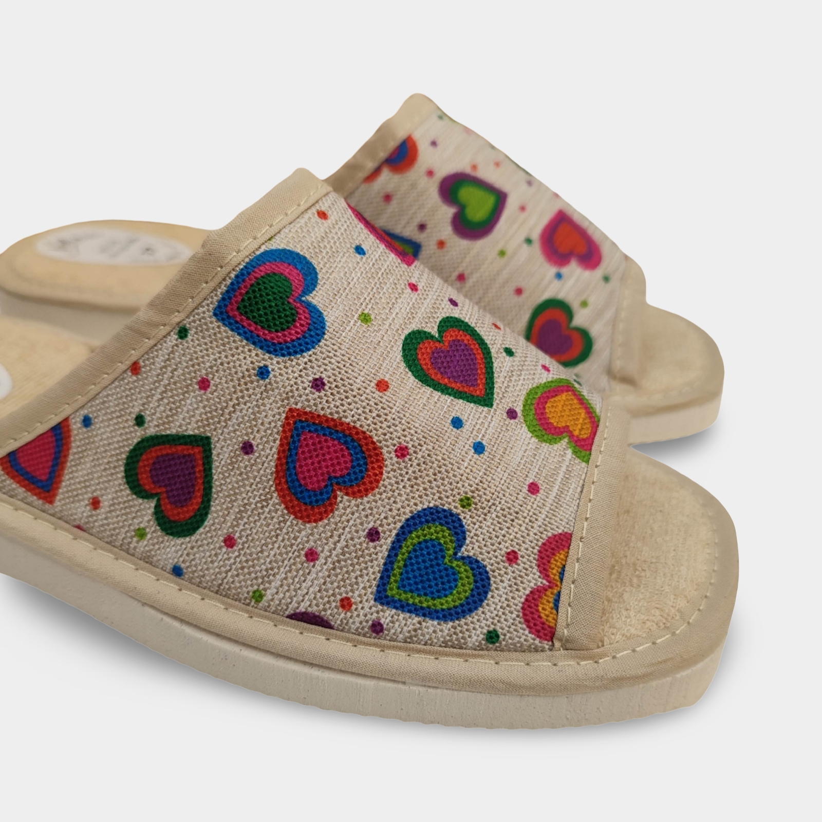 Sabatilles de casa estiu dona divertides en beix amb cors