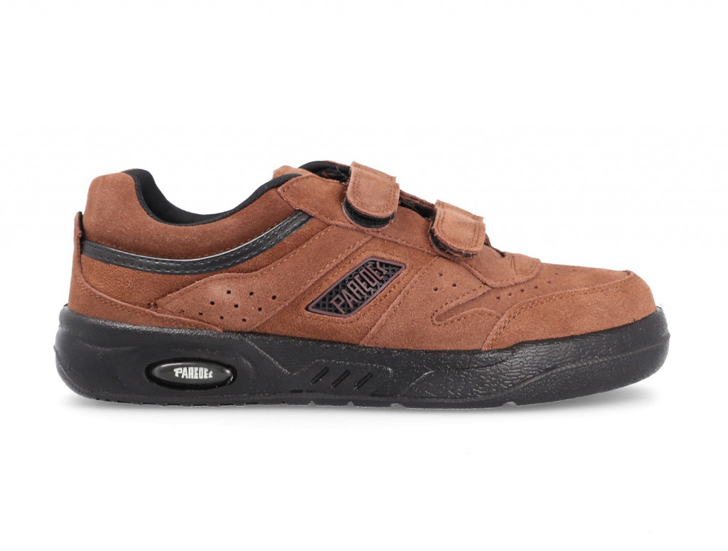 Las zapatillas Paredes en color marrón con velcros son la elección perfecta para quienes buscan calzado resistente, cómodo y fácil de ajustar. Su diseño en serraje de alta calidad aporta un estilo clásico y atemporal, ideal para el uso diario, el trabajo o largas caminatas.