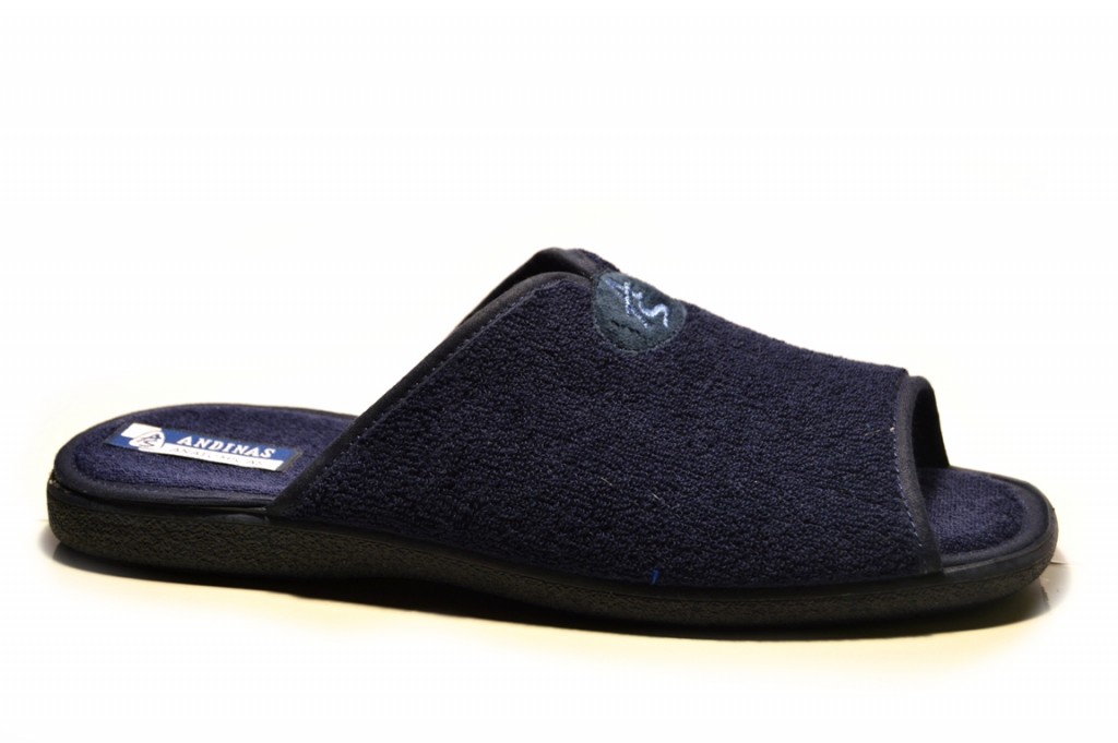 Zapatilla para casa abierta de hombre en color azul marino fabricada con rizo, ideal para primavera y verano.