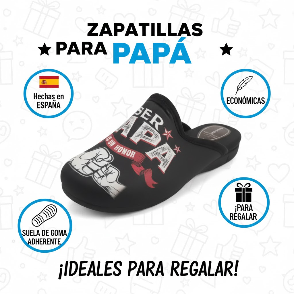 Haz un regalo práctico, original y lleno de significado con estas zapatillas de casa “Ser Papá es un Honor”. Pensadas como un detalle especial para padres orgullosos, combinan comodidad, diseño divertido y precio económico.