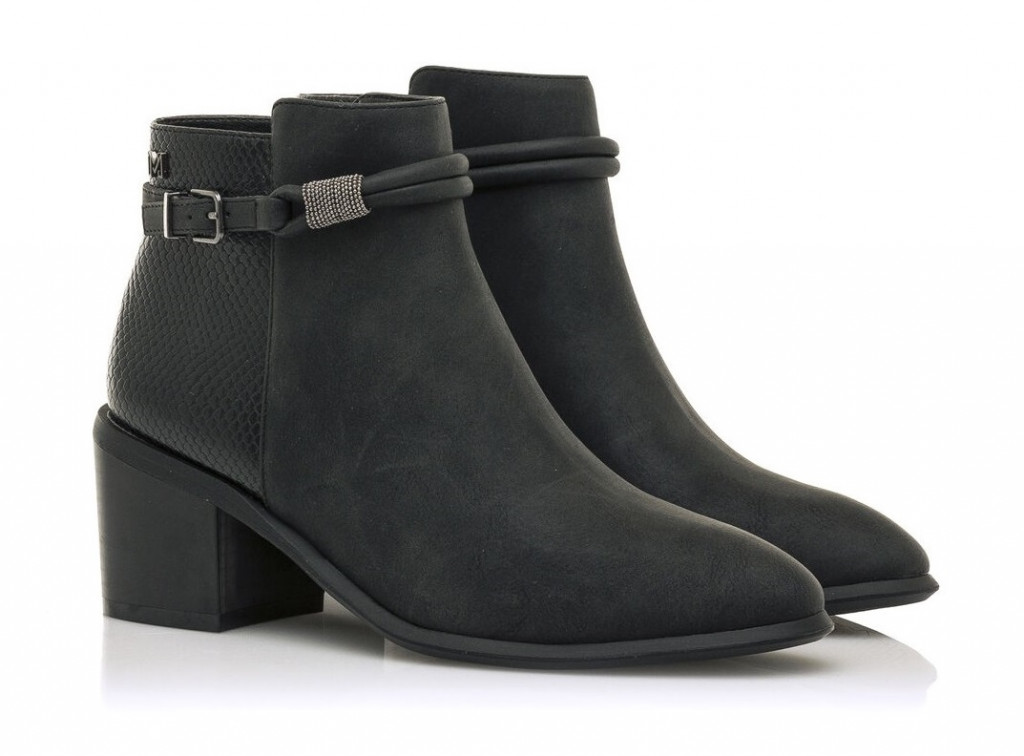 Botines de la marca Maria Mare en color negro con unos bonitos detalles en el lateral de una hebilla y unos finos brillitos, además la parte trasera es tipo coco.