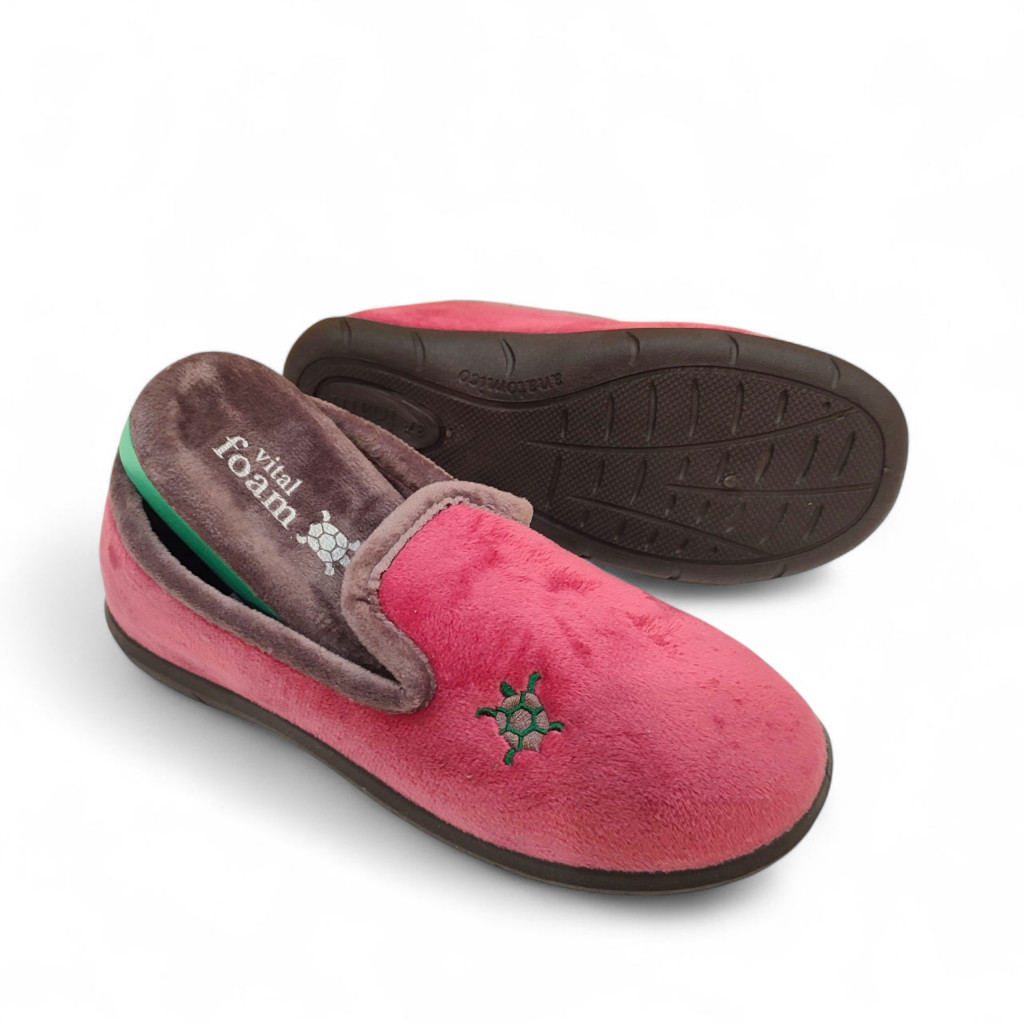 Las zapatillas cerradas de casa Vital Foam para mujer en color rosa están diseñadas para ofrecer el máximo abrigo, comodidad y suavidad en invierno. Su diseño cerrado mantiene el pie protegido del frío, evitando corrientes de aire y aportando una sensación cálida y acogedora en todo momento.