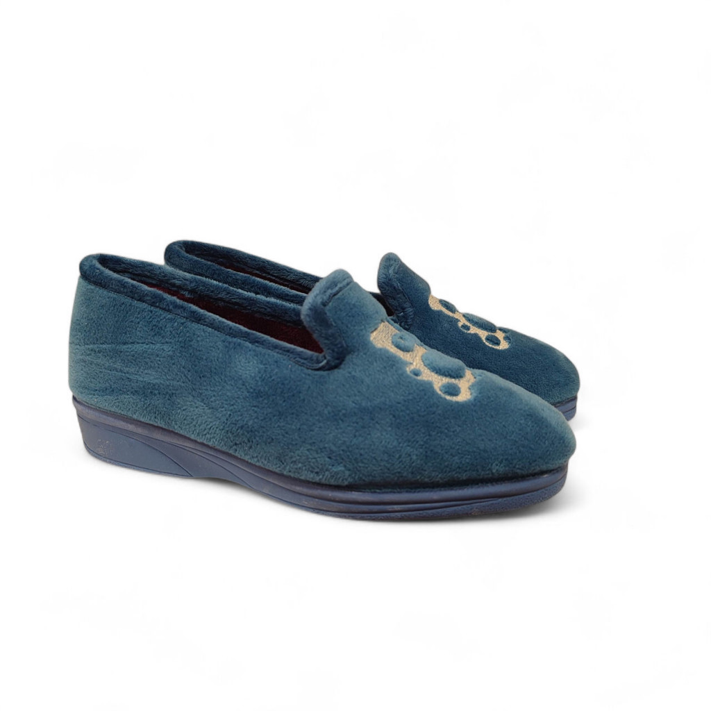 Disfruta del invierno con nuestras encantadoras zapatillas de casa cerradas para señora con diseño de osito, una opción cálida, cómoda y con mucho encanto. Están confeccionadas en terciopelo suave que aporta una sensación de abrigo y bienestar en cada paso, perfectas para los días fríos. Su bonito color azulón les da un toque alegre y elegante, ideal para quienes buscan comodidad sin renunciar al estilo.