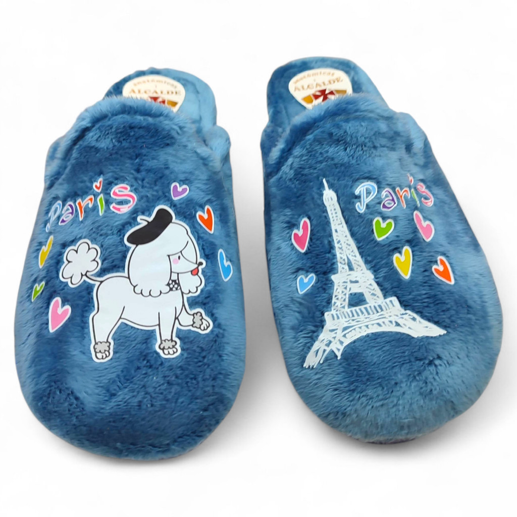 Dale a tus pies el confort que merecen con estas zapatillas de casa para mujer de estilo juvenil, perfectas para el invierno. Con un divertido diseño de la Torre Eiffel, un perrito y letras de París, se convierten en un detalle original y alegre que hará que tus momentos en casa sean más acogedores.