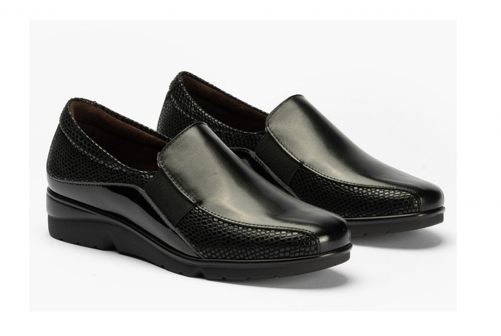 Un zapato comodísimo con una pequeña cuña, es de piel y cuenta con licra en los laterales para adaptarse perfectamente a cada tipo de pie. Además la plantilla es extraíble, ideal para mujeres que necesitan llevar plantillas ortopédicas y para una buena limpieza. Muy ligero.