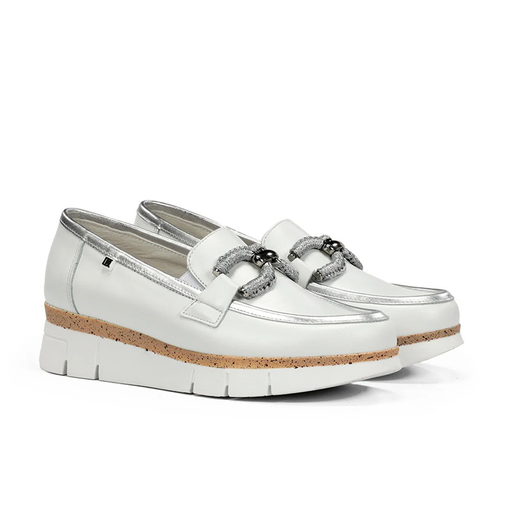 Descubre los mocasines Dorking Fluchos India D9298 en blanco y plata, el calzado perfecto para mujeres que buscan elegancia, confort y frescura en los días cálidos. Fabricados en piel transpirable de alta calidad, combinan diseño y funcionalidad para un look sofisticado y versátil.