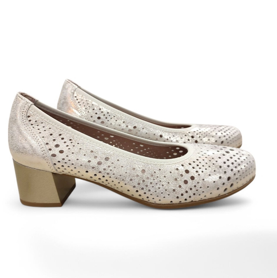 Salón Pitillos oro agujereado tacón medio