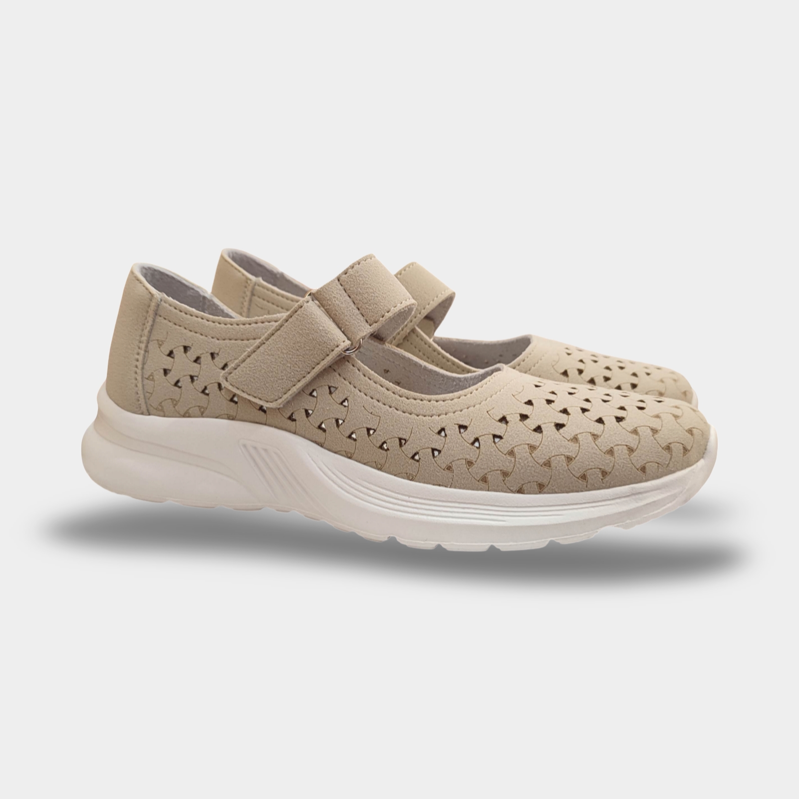 Cette chaussure de sport de style Mary Jane, ultra-légère, est disponible en taupe et est idéale pour celles qui recherchent le confort sans sacrifier un style pratique et polyvalent. Sa conception perforée assure une excellente respirabilité, ce qui en fait la compagne idéale pour les journées de printemps et d'été 🌿
