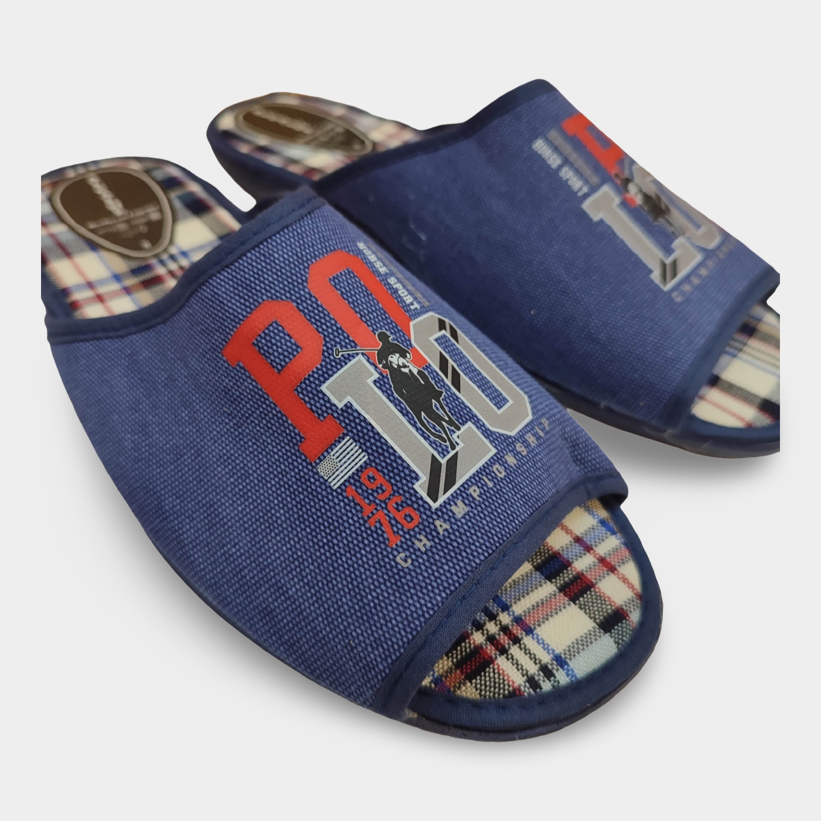 Pantoufles d'été pour hommes en solde, style POLO, en denim bleu